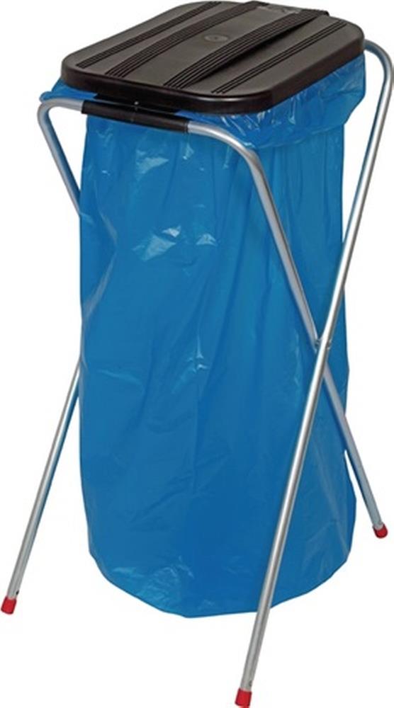 für 70-/120-l-Kunststoffsäcke · robustes, schlagfestes Stahlrohrgestell, Oberfläche galvanisch verzinkt · Kunststoffdeckel eckig mit Klemmring zur Sackbefestigung