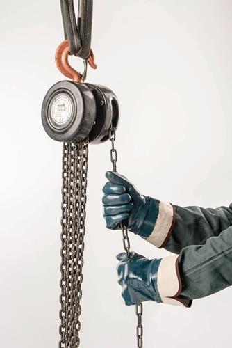nach EN 388 · Kat. II · Material: Baumwoll-Jersey mit Nitrilbeschichtung · Sicherheitsstulpe · widerstandsfähiger Handschuh für anspruchsvollen Einsatz · hohe Beständigkeit gegen scharfkantige und scheuernde Materialien · robuster und flexibler als PVC · wirksame Fett- und Ölsperre · keine Qualitätsbeeinträchtigung · silikonfrei · latexfrei · garantierte Reinheit für die Metall- und Motorenherstellung · antistatisch gem. EN 1149