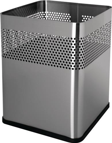 Gehäuse aus Edelstahl · Boden mit Gummiring, schwarz · luftdurchlässiges Lochraster